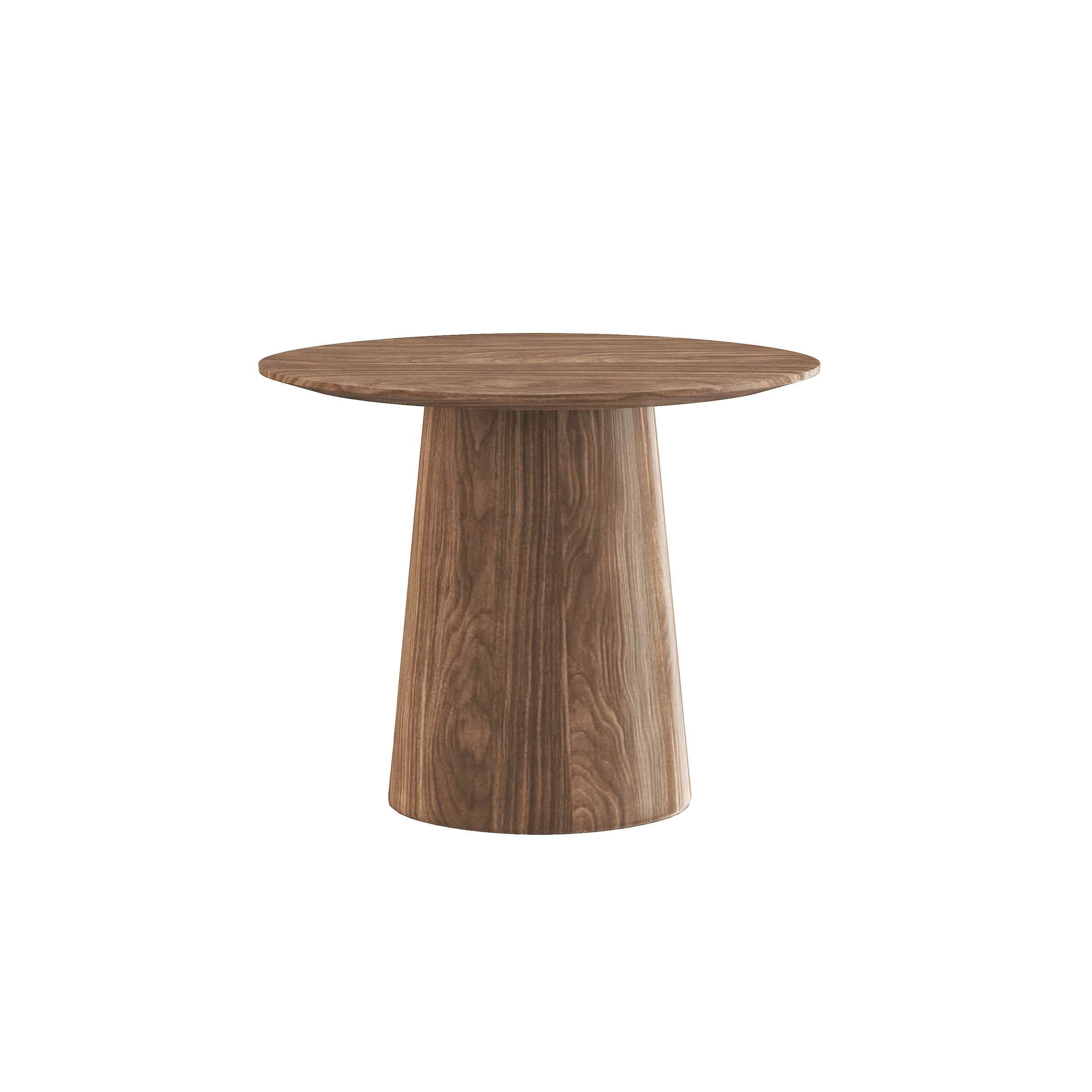 This walnut-look MDF-veneer round table pairs a smooth top with a tapered, wood-grain pedestal base, blending warm natural texture and modern elegance. Sturdy yet budget-friendly, its cohesive design suits Nordic or contemporary spaces—ideal as a compact dining or accent piece, merging understated charm with everyday practicality seamlessly.
