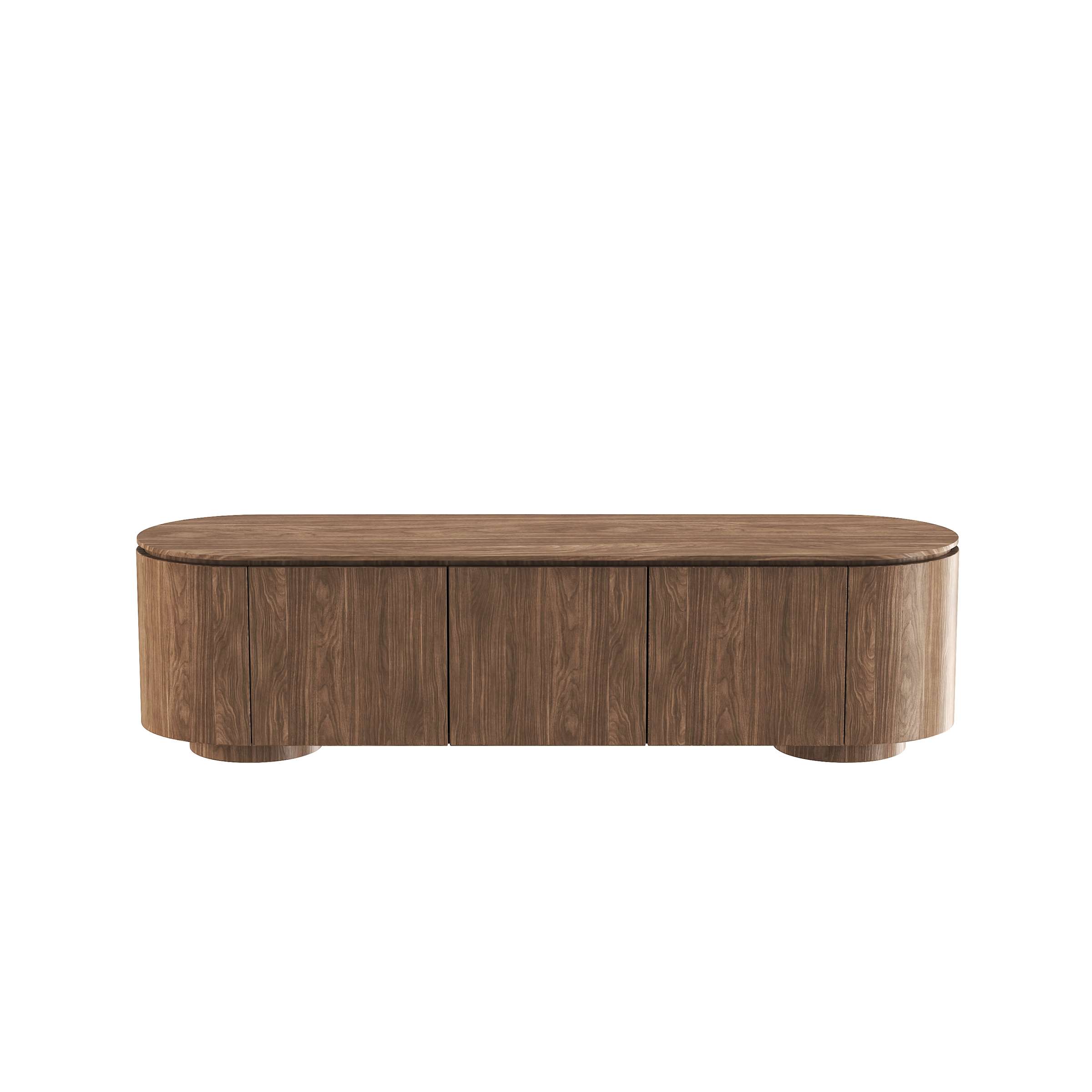 This oval cabinet uses walnut-textured MDF veneer, with a smooth top and curved body for a warm, cohesive look. Its minimalist silhouette suits Nordic or contemporary spaces—sturdy, sleek, and fitted with hidden storage. Ideal for living rooms or entryways, it balances natural wood charm with practical organization, merging style and functionality seamlessly.