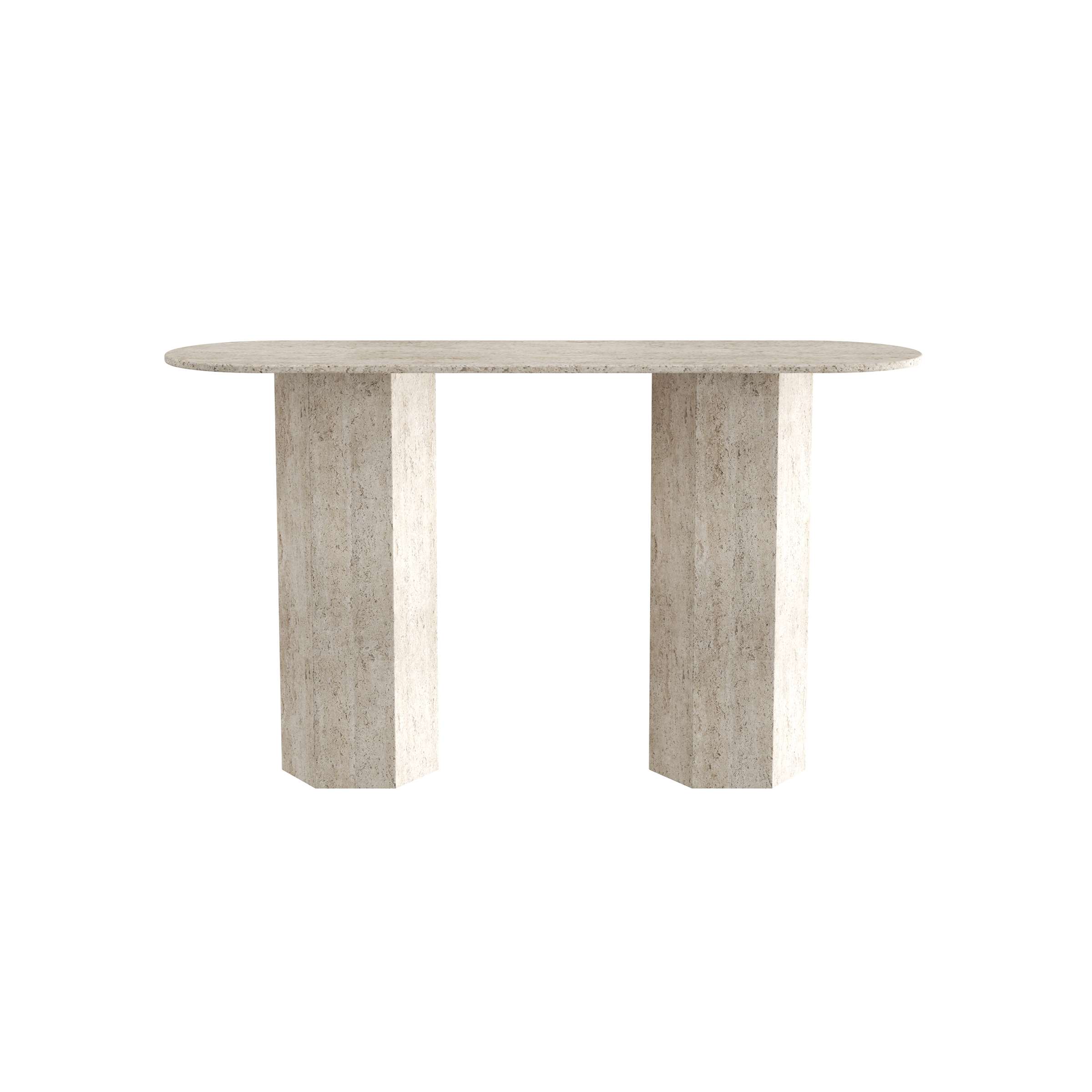 This console table boasts light, stone-like textured MDF veneer, with an oval top and thick, hexagonal block legs that bring a subtle, organic-modern feel. Perfect for light-luxury or Scandinavian entryways, it’s sturdy yet airy—providing a sleek surface for entry essentials while infusing the space with a soft, neutral warmth that balances understated style and practicality.