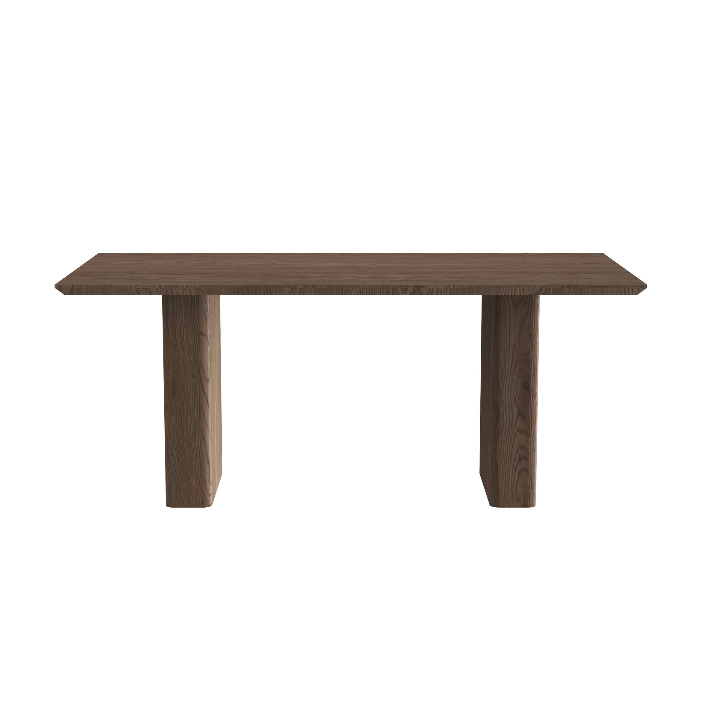 This warm walnut-look MDF-veneer rectangular table blends understated elegance with practicality. Its smooth top pairs with sturdy, blocky legs, creating a cohesive, polished silhouette ideal for dining or living spaces.