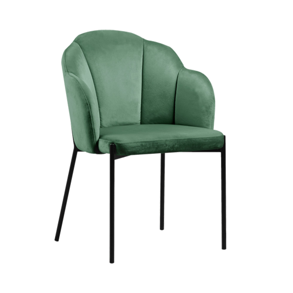 This lush emerald velvet chair is pure luxury for your space: its soft, plush upholstery and sculpted, curved silhouette exude elegance, while the sleek black legs add a sharp, modern contrast. Perfect for dining nooks, accent corners, or home offices—rich in color, cozy in feel, and endlessly stylish.