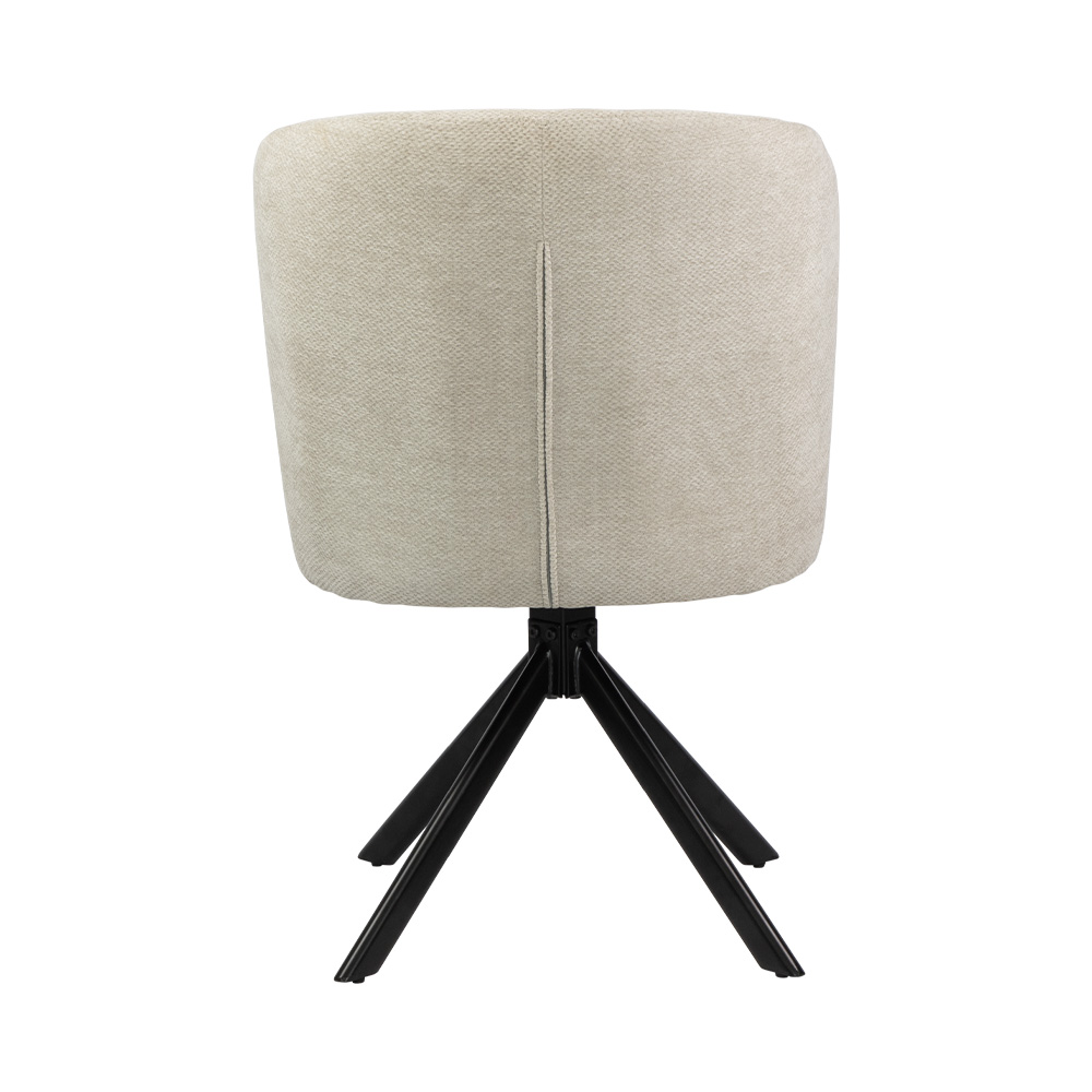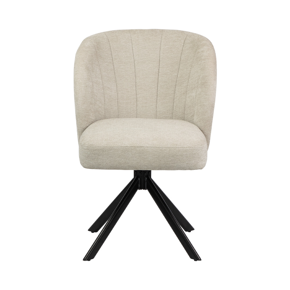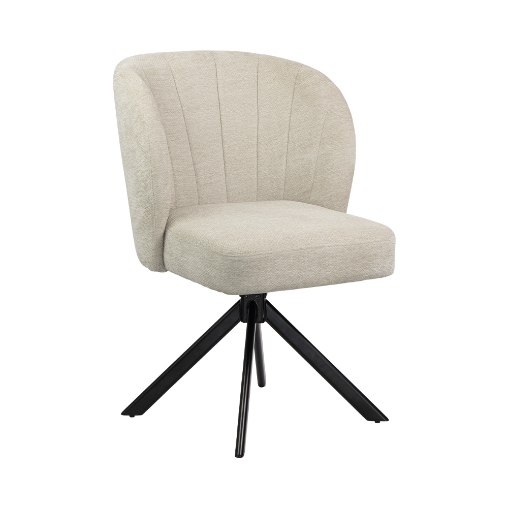 This chic accent chair is where modern texture meets effortless comfort: its soft, neutral upholstery and sculpted, ribbed back add subtle sophistication, while the sleek black swivel base brings functional flair. Perfect for adding a polished touch to your dining nook, home office, or living space—cozy enough to linger in, stylish enough to elevate any room.