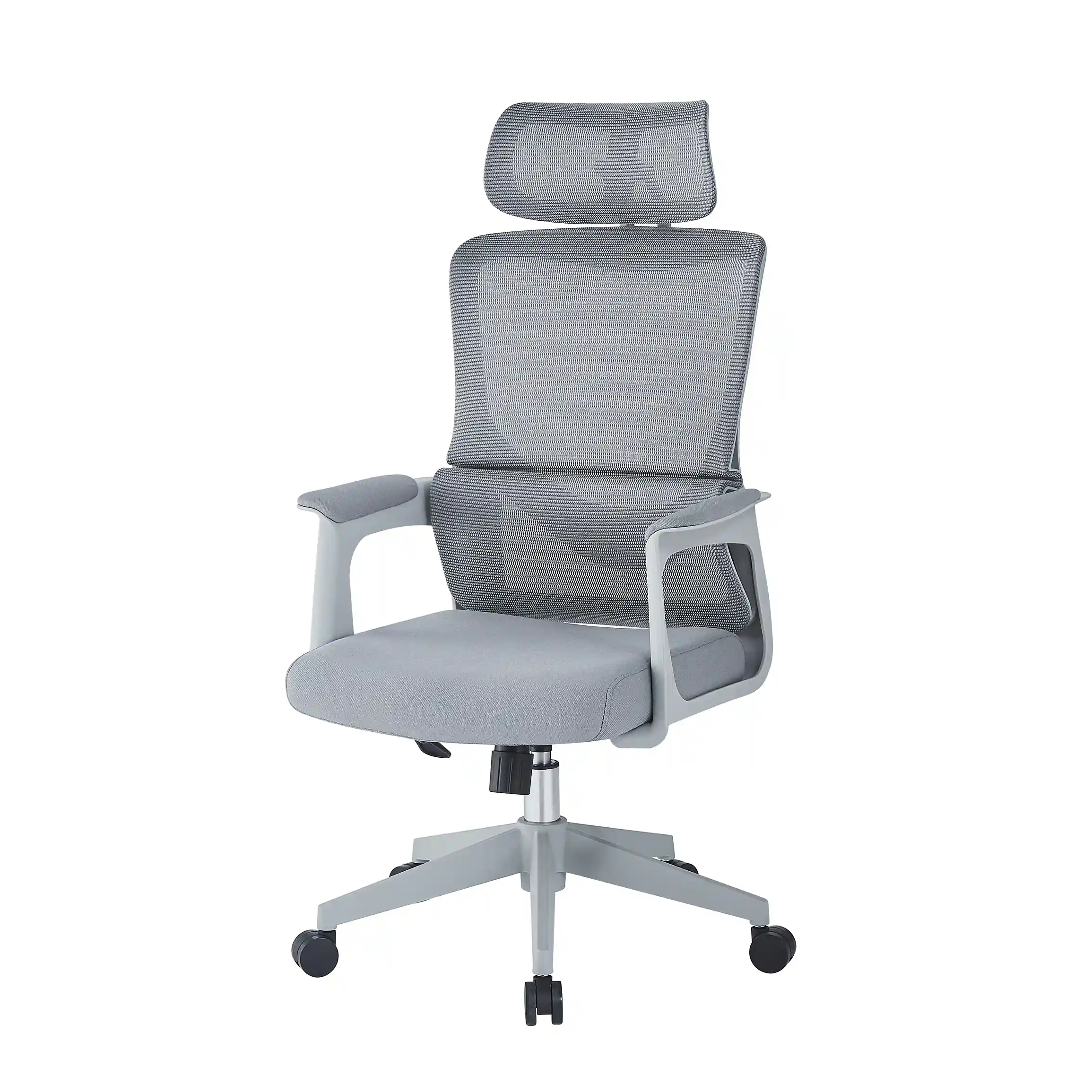 Designed for all-day productivity, this office chair features a 360-degree swivel base for effortless mobility and a pneumatic height adjustment to suit any desk setup. The reinforced PP material ensures durability and stability, while the breathable mesh backrest promotes airflow for enhanced comfort. The adjustable headrest provides personalized neck support, and the soft-padded armrests offer cushioned relaxation during long work hours. Ideal for professionals seeking ergonomic excellence, this chair combines sleek design with practical features for a healthier workspace.