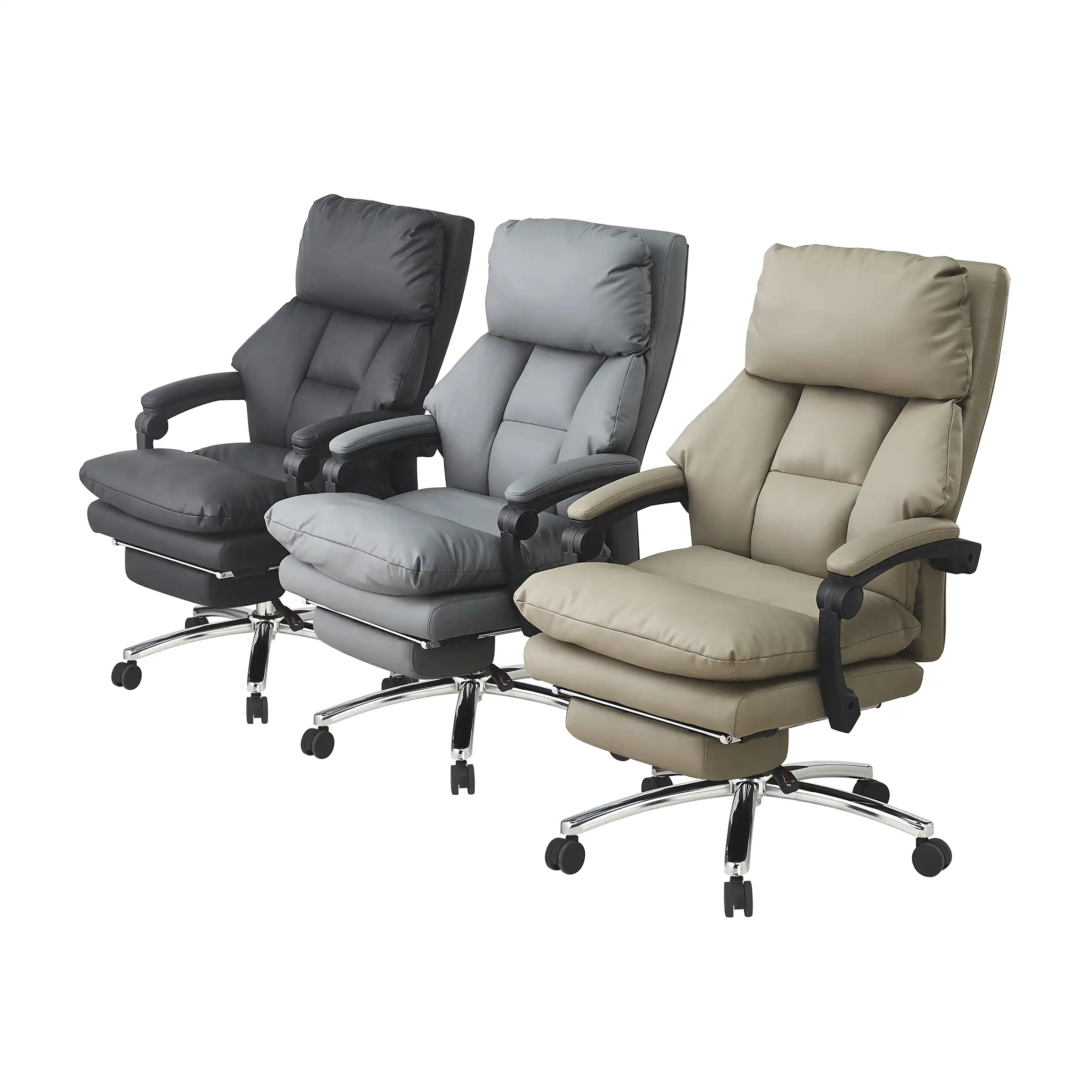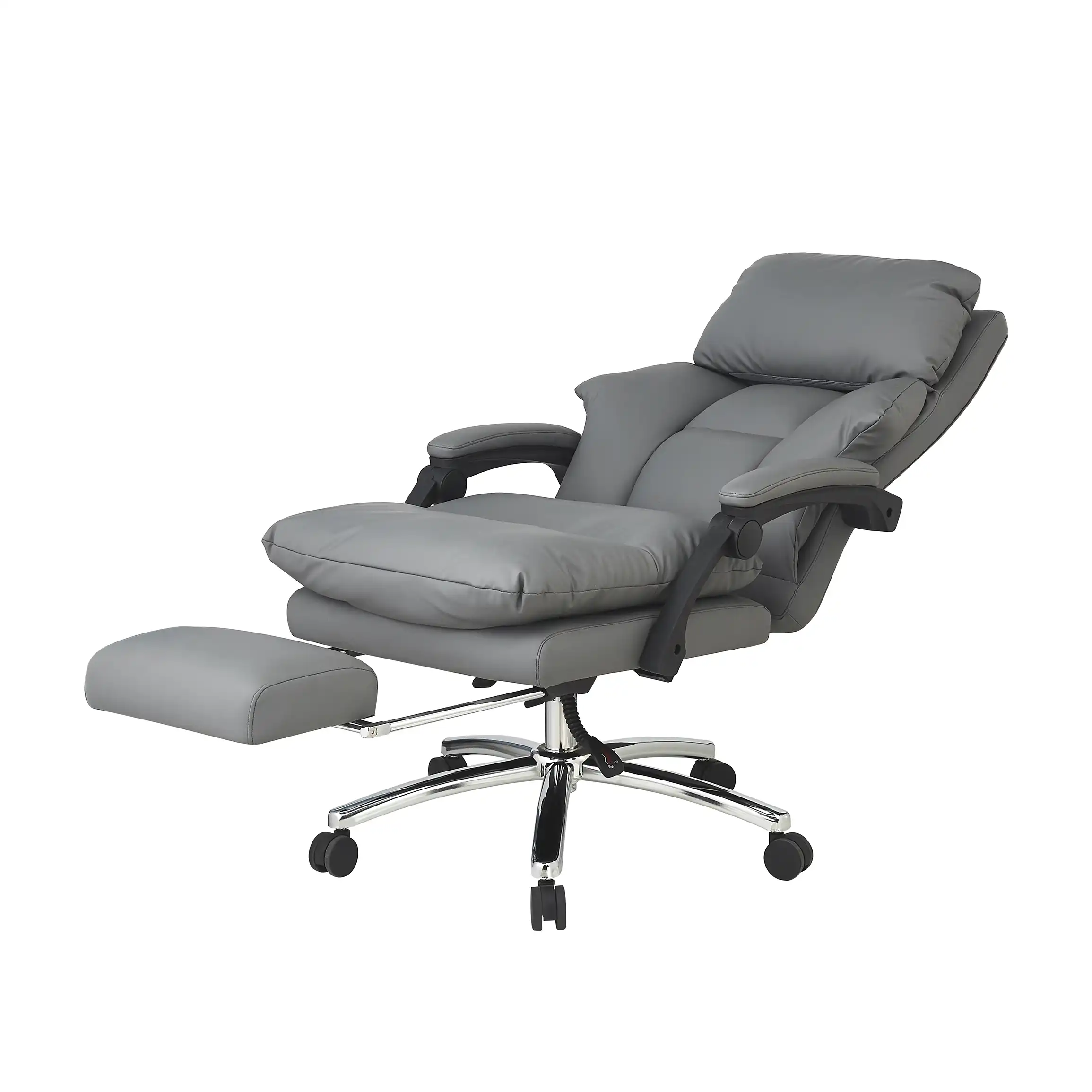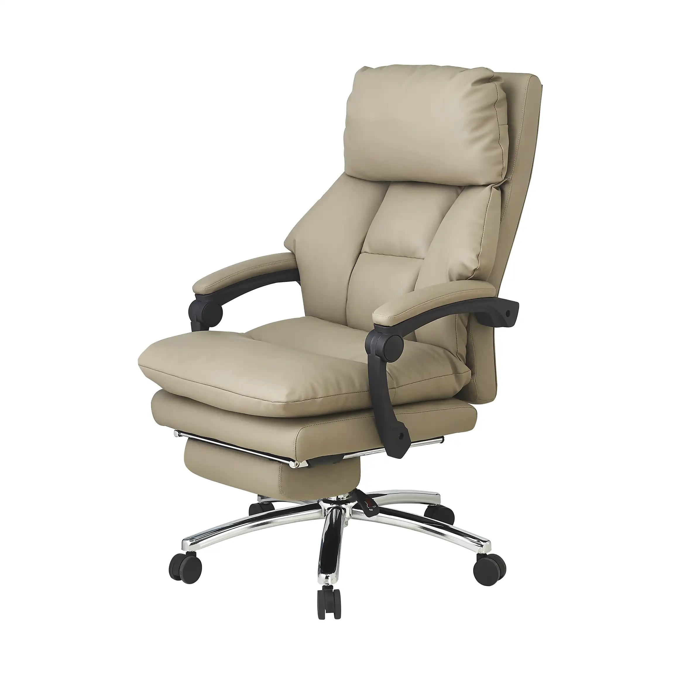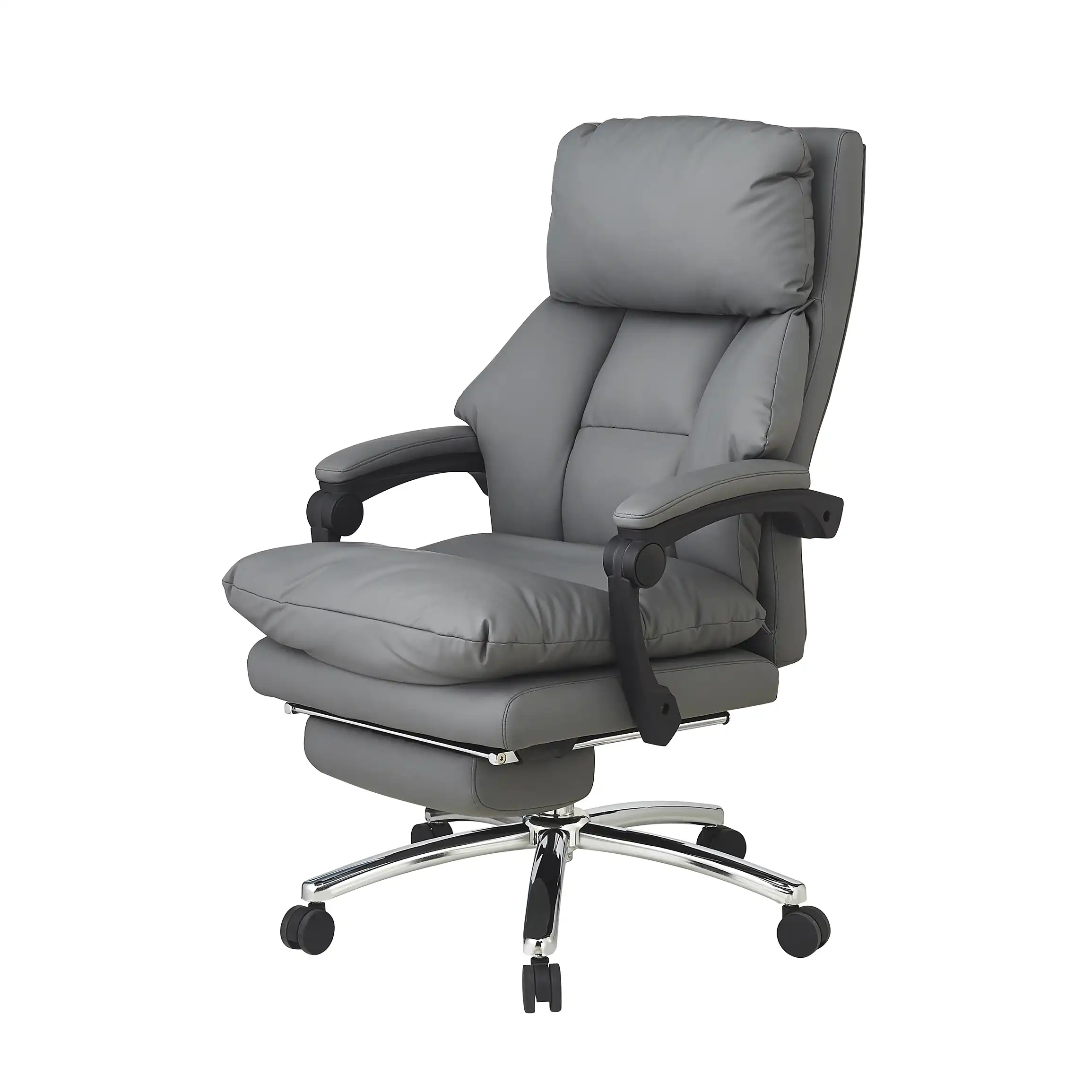Experience ultimate comfort with this ergonomic PU office chair, designed for professionals seeking all-day support. The high-density foam cushioning ensures a plush yet supportive seat, while the reclining backrest with adjustable tilt lets you find your perfect angle for relaxation. Integrated footrest provides additional leg support during breaks, and the smooth 360-degree swivel base allows effortless movement across your workspace. The pneumatic height adjustment feature lets you customize the chair to your desk for optimal posture. Crafted with durable PU leather, this chair combines style, functionality, and durability for a premium work experience.
