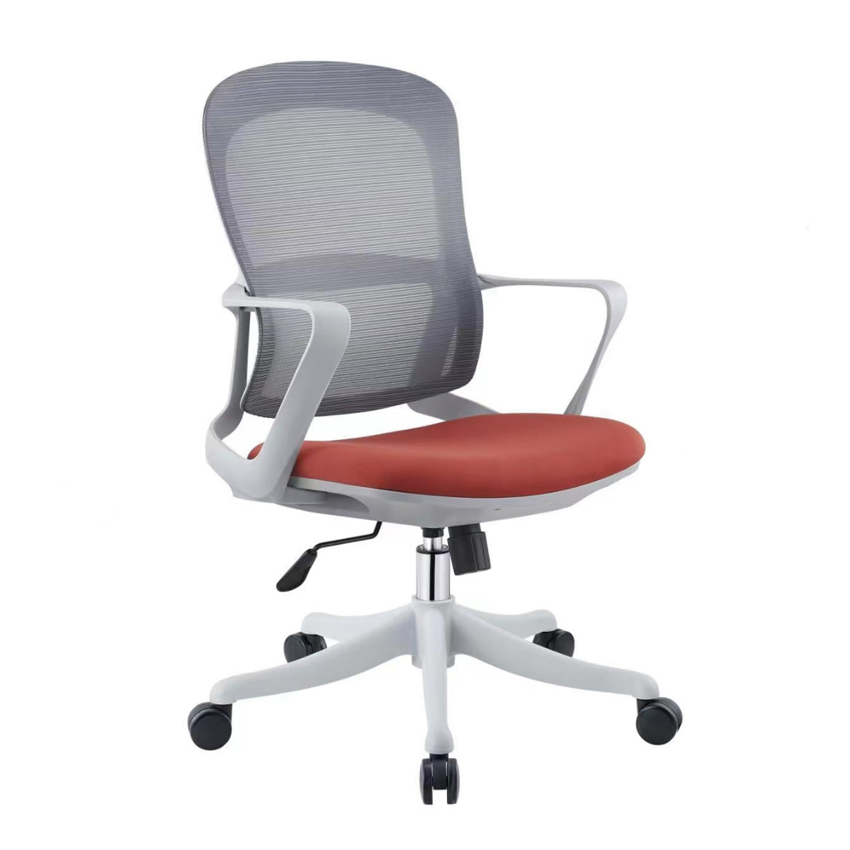 Mesh+PP backrest, fabric seat, PP armrest, class 2 gas lift, PP five star base & wheels.