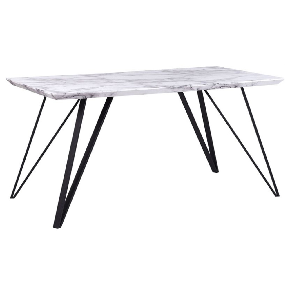 Luxe marble-look top + sleek black triangular legs: textured elegance meets crisp modern lines. Sturdy, chic, ideal for refined minimalist dining.