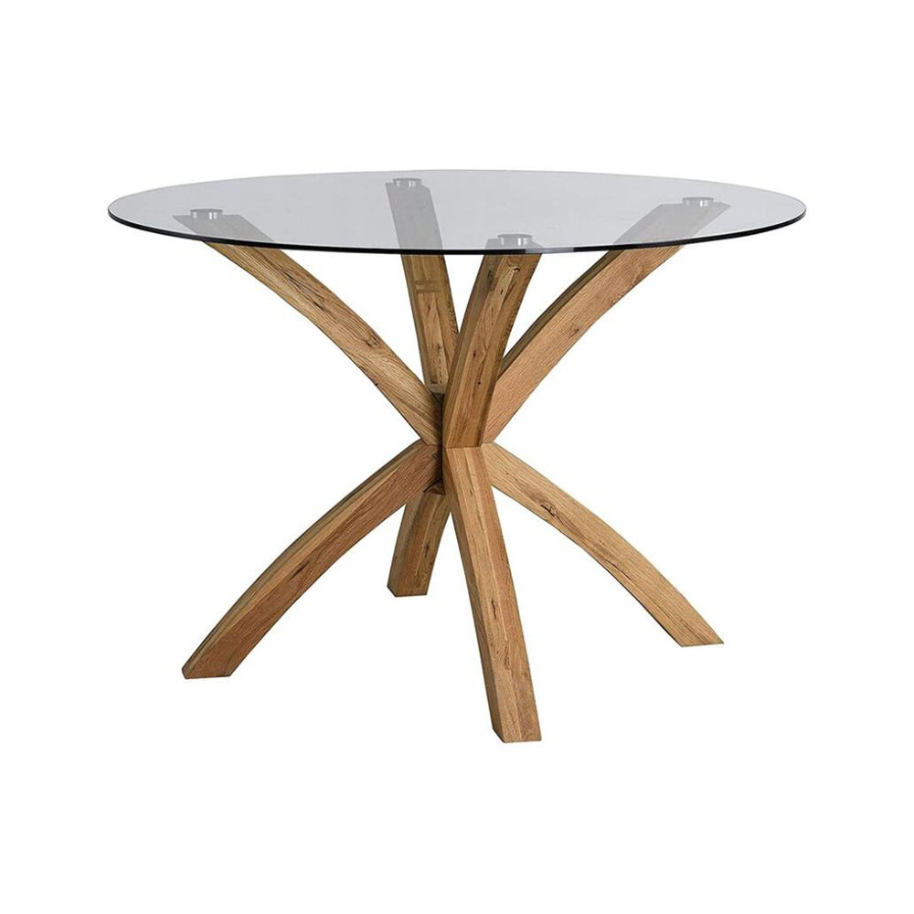 Airy clear glass + warm natural oak cross legs: soft, woodsy charm meets open, bright design. A cozy, inviting pick for light-filled, rustic-modern dining nooks—perfect for casual, warm gatherings.