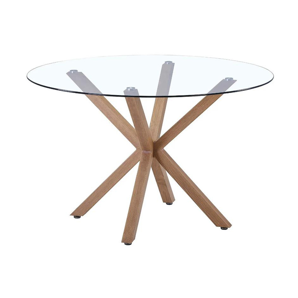 Clear glass top (airy, modern vibe) + warm oak-finish cross legs: lightweight style meets sturdy charm. Ideal for bright, contemporary dining nooks—chic, open, and ready for meals or gatherings.