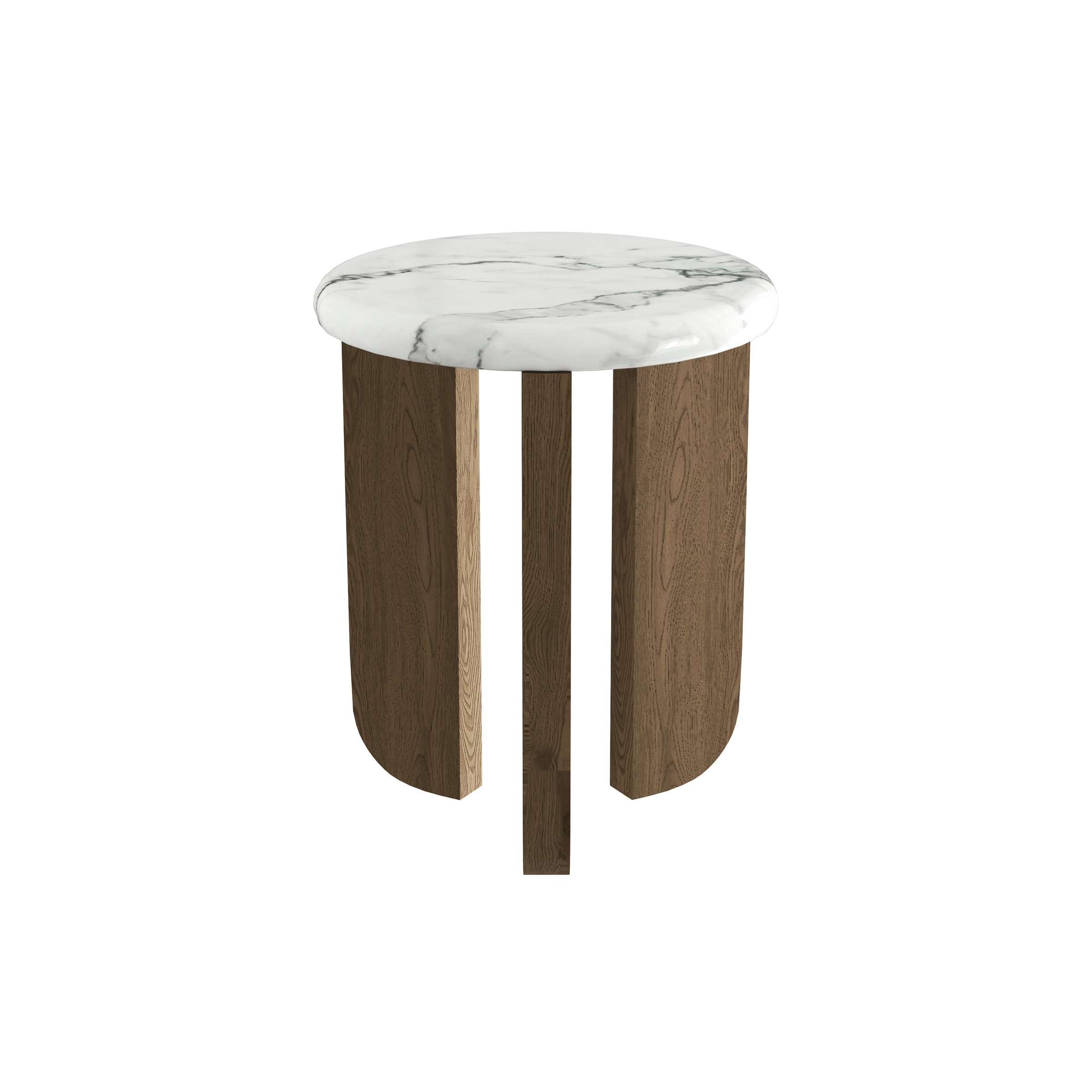 The tabletop features premium natural white snow-white marble, scratch-resistant with a cool, elegant grain that exudes sophistication. The three-legged MDF base boasts a crack-resistant, moisture-proof matte finish. Its triangular design ensures stability without taking up space. Perfect for effortlessly placing beside your sofa, bedside, or balcony, this compact piece adds a stylish accent.