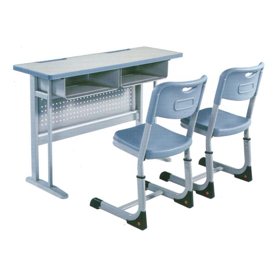 The desk top is made of MDF with melamine finish and comes with a sturdy steel storage compartment. The chairs feature PE blow-molded seats and backrests, supported by thickened steel tubes with a height-adjustable function to suit students of different ages. The entire set can be produced in a knock-down structure for easy shipping and assembly, and is securely packed in cartons.