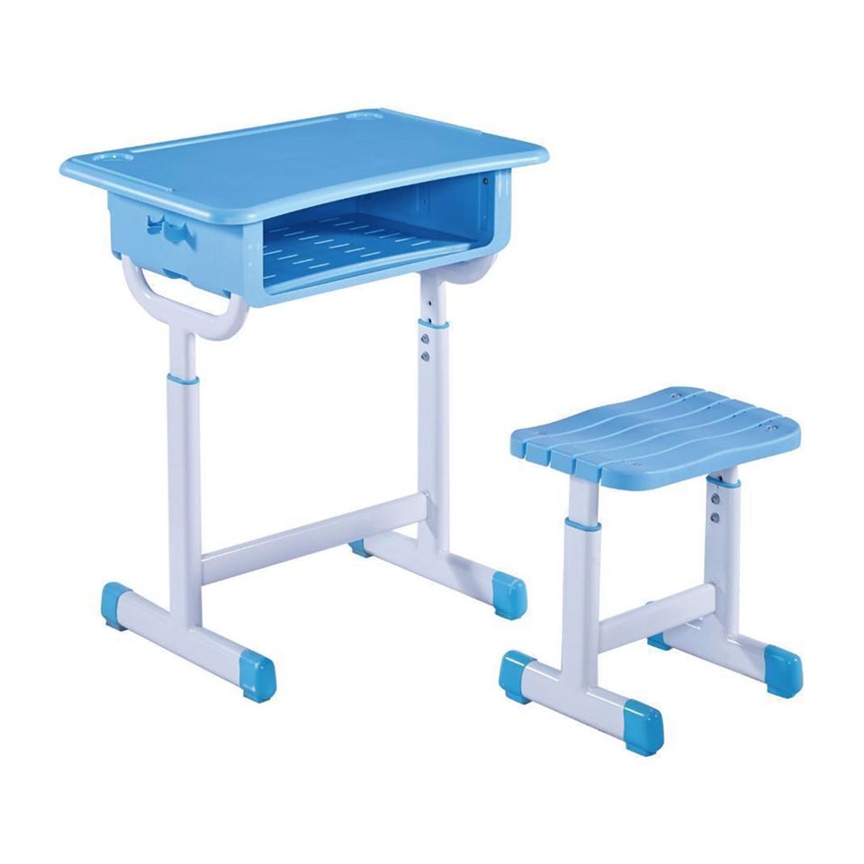 Durable School Desk & Stool Set – This school desk and stool set features an ABS material desktop for durability and scratch resistance. The storage drawer and stoll seat are made of PP material for lightweight and easy maintenance. Both the desk and stool are constructed with reinforced steel tubing for enhanced stability. The entire set supports height-adjustable functionality via manual operation, catering to different student needs. Designed with a disassembled structure, the products can be easily packed into cardboard boxes for efficient storage and transportation.