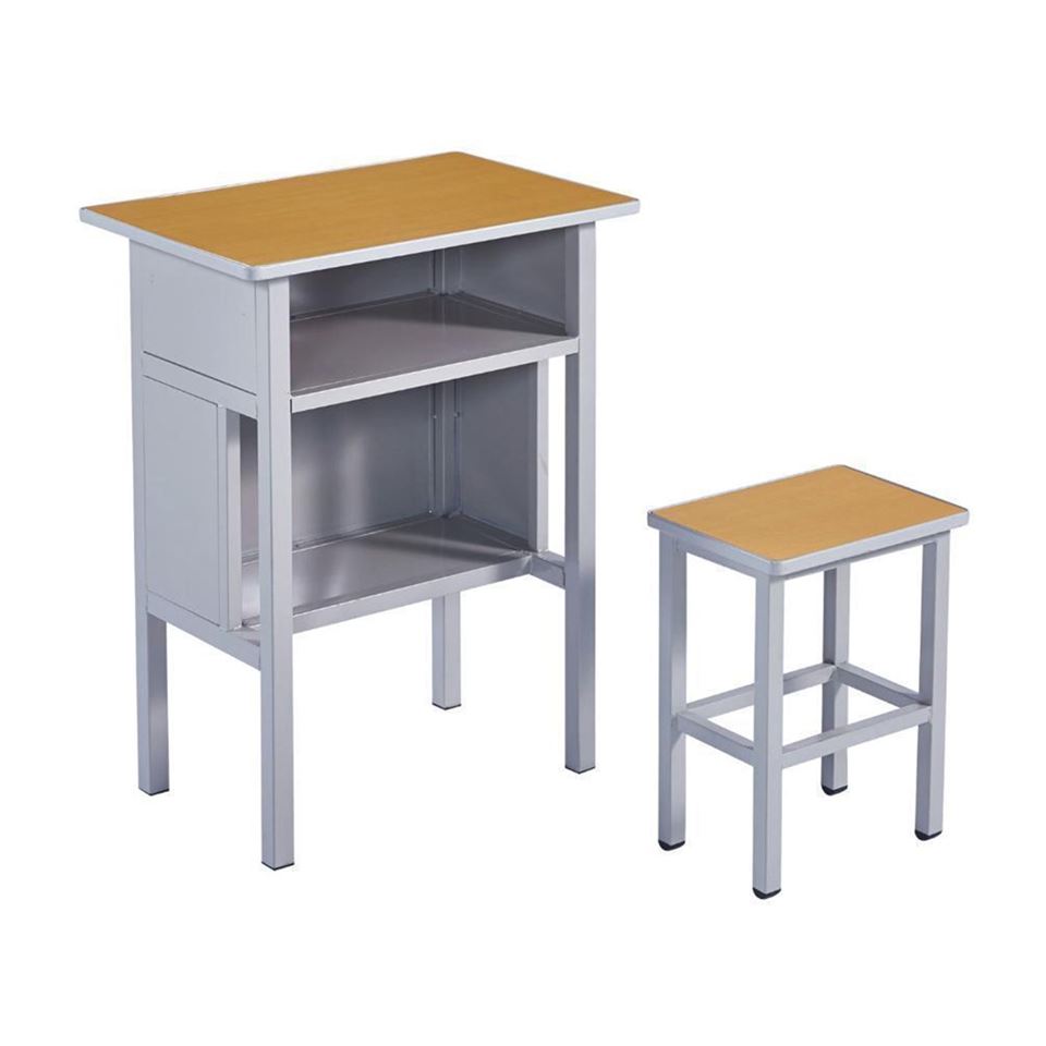 The desk top and stool seat are both made of multilayer board, offering reliable toughness and easy maintenance for busy school environments. The desk is fitted with a double-layer steel storage compartment, providing ample space for students to organize books and stationery.