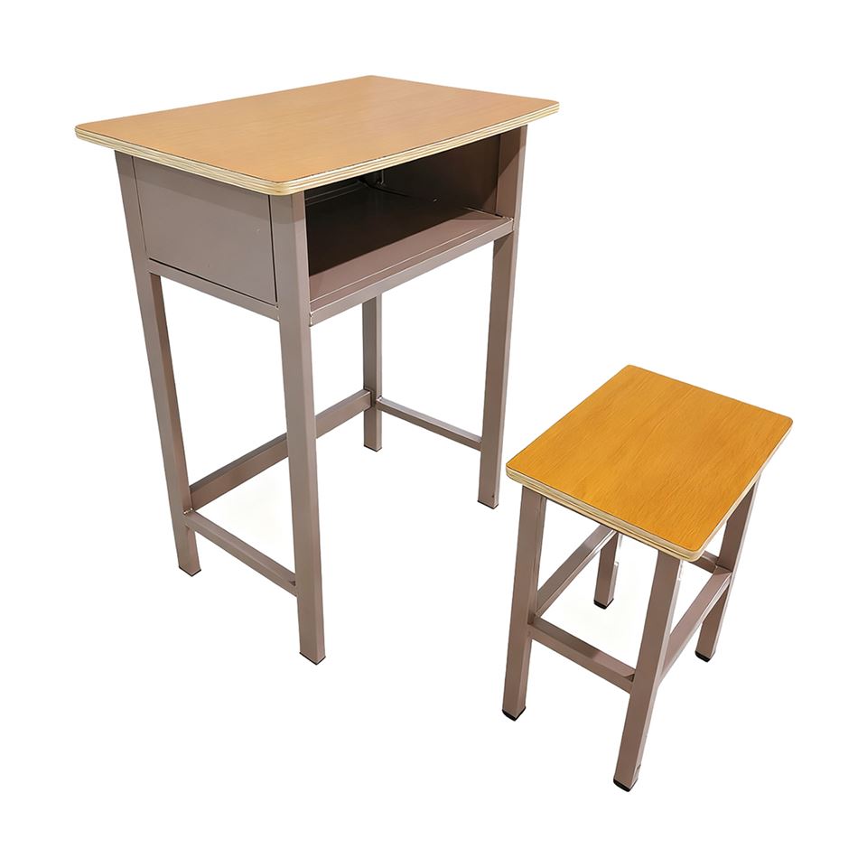 This no-frills school desk and stool set is designed for everyday classroom use, balancing sturdiness and functionality.